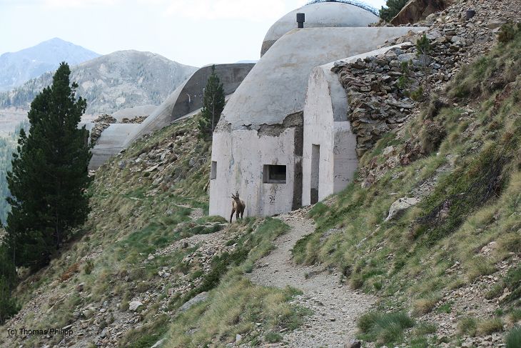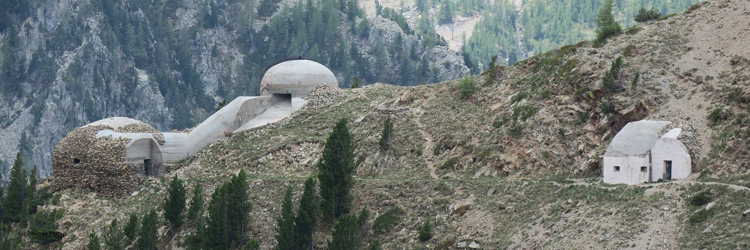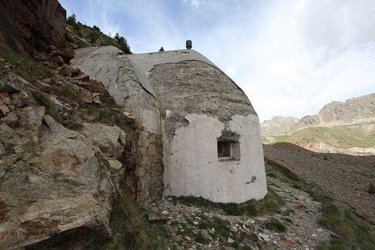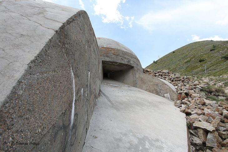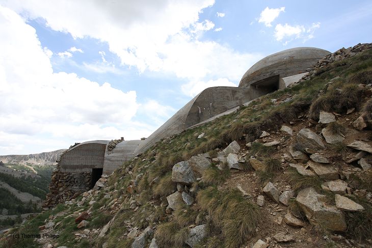 oberhalb der Passtraße des Col de la Lombarde. Die Bunker