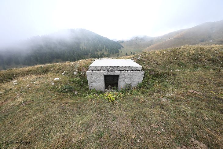 Der östliche MG Bunker am Bergkamm. Im Hintergrund