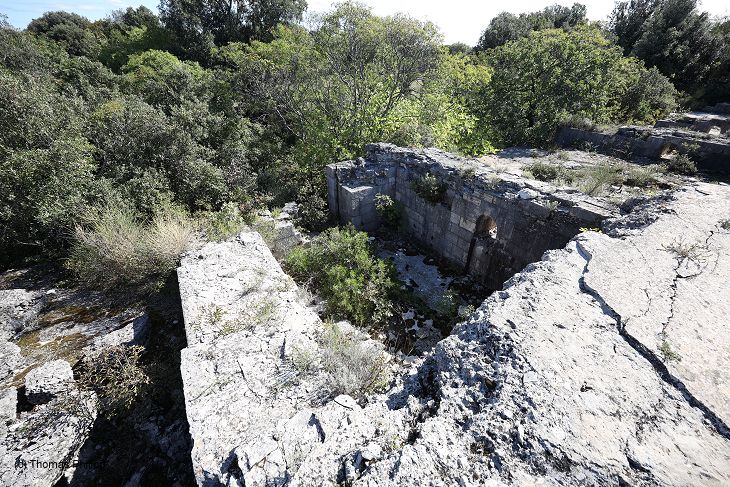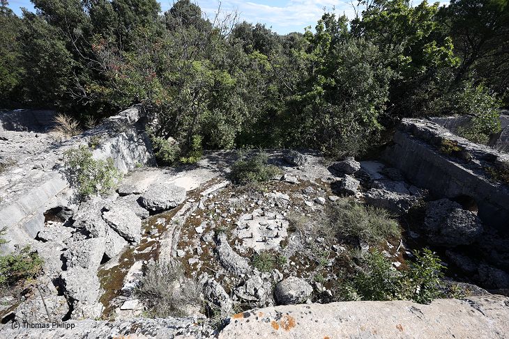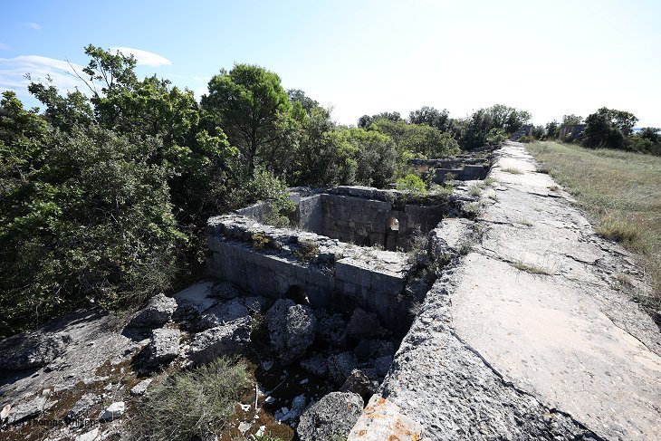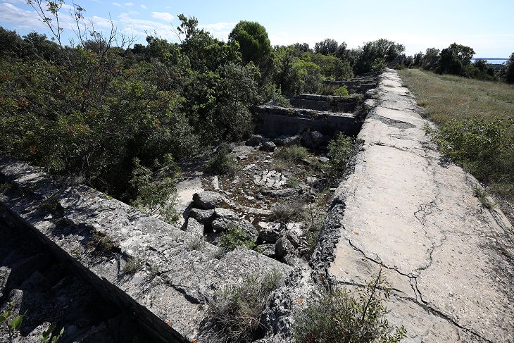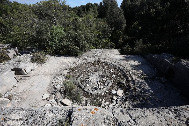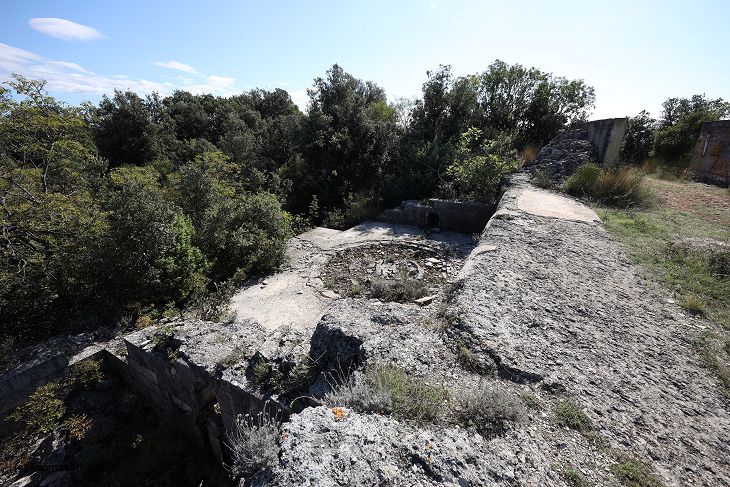 Eine der Geschützbettungen für ein der M 80 Kaliber 21 cm