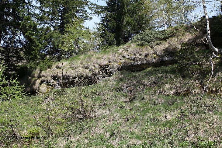 Gewehrscharten umschließt die Galerie den Hügel und deckt so